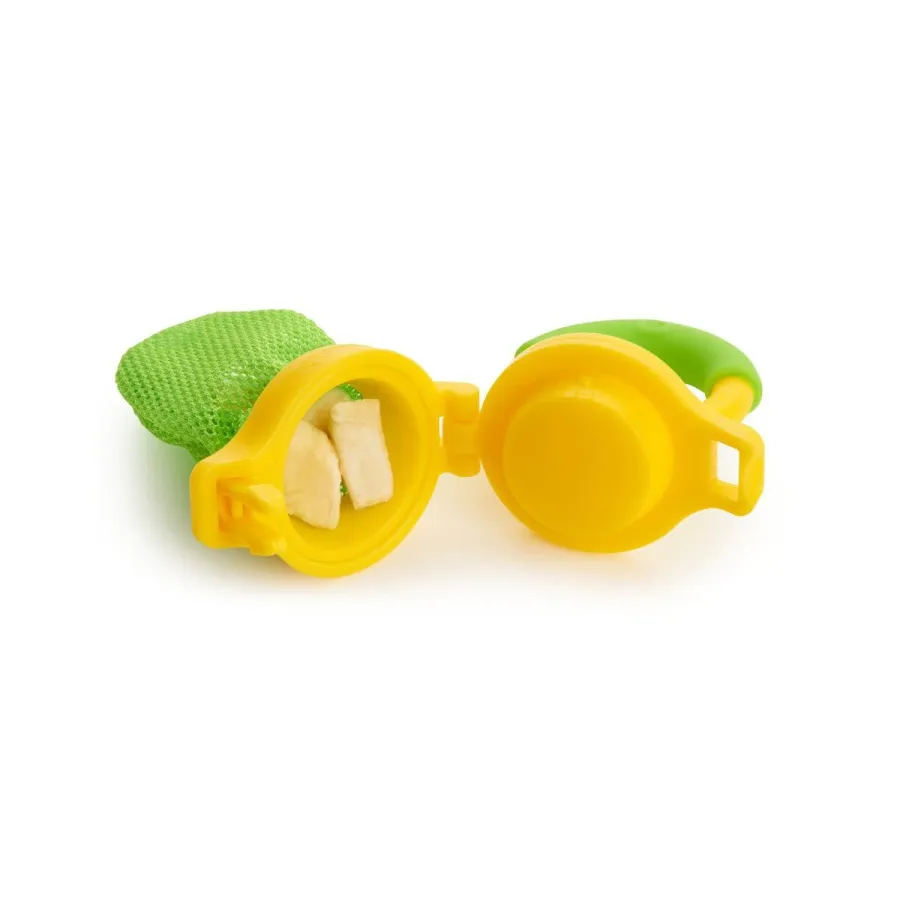 Es fundamental que desde que tu peque comience el proceso de incorporación de alimentos sólidos en su dieta procures porque las frutas y las verduras formen parte de su dieta, para ello el alimentador Munchkin para alimentos frescos será tu aliado perfecto pues le permite al bebé saborear alimentos cogiéndolo con sus manitas sin preocuparte por si se atraganta.