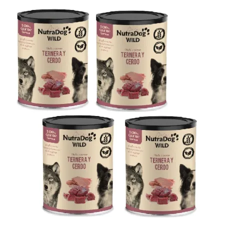 Alimento húmedo 100 % natural de ternera y cerdo para perros NutraDog WILD. Pack Ahorro 4 x 400g