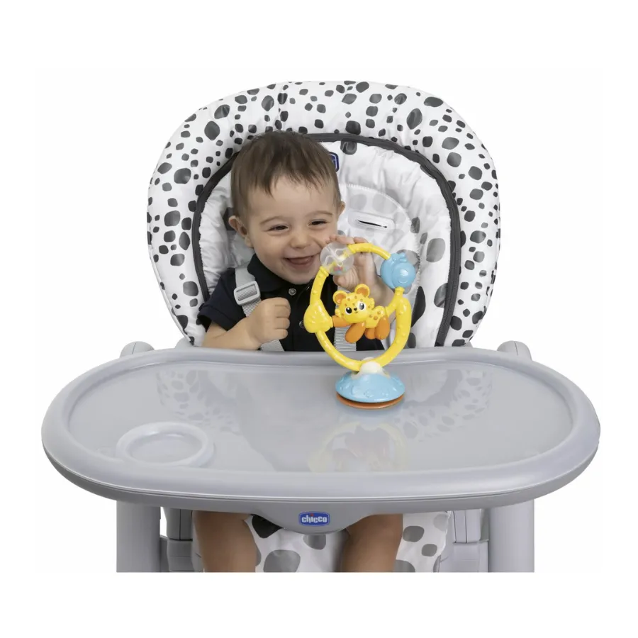 Haz que la hora de la comida también sea momento de juego y aprendizaje con el Amigo de la Selva de Chicco, el juguete interactivo ideal para usar sobre la trona o cualquier superficie. ¡Diversión y estimulación en un solo juguete!