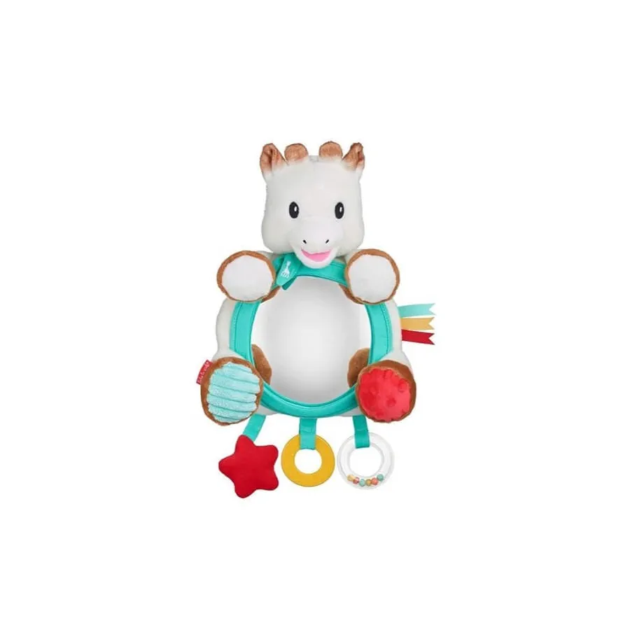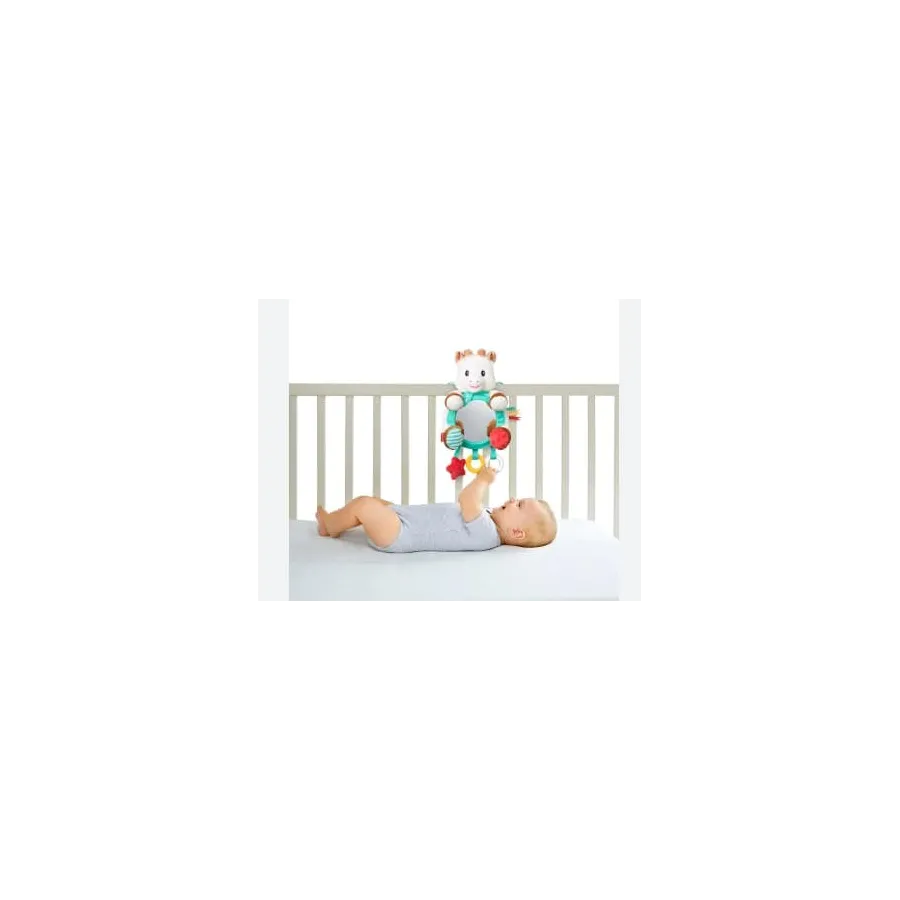 Ofrécele al bebé un montón de posibilidades y estímulos con el Espejo multi soporte de Sophie. Perfecto colgar en el carrito, en el coche o en la cuna por las agarraderas.