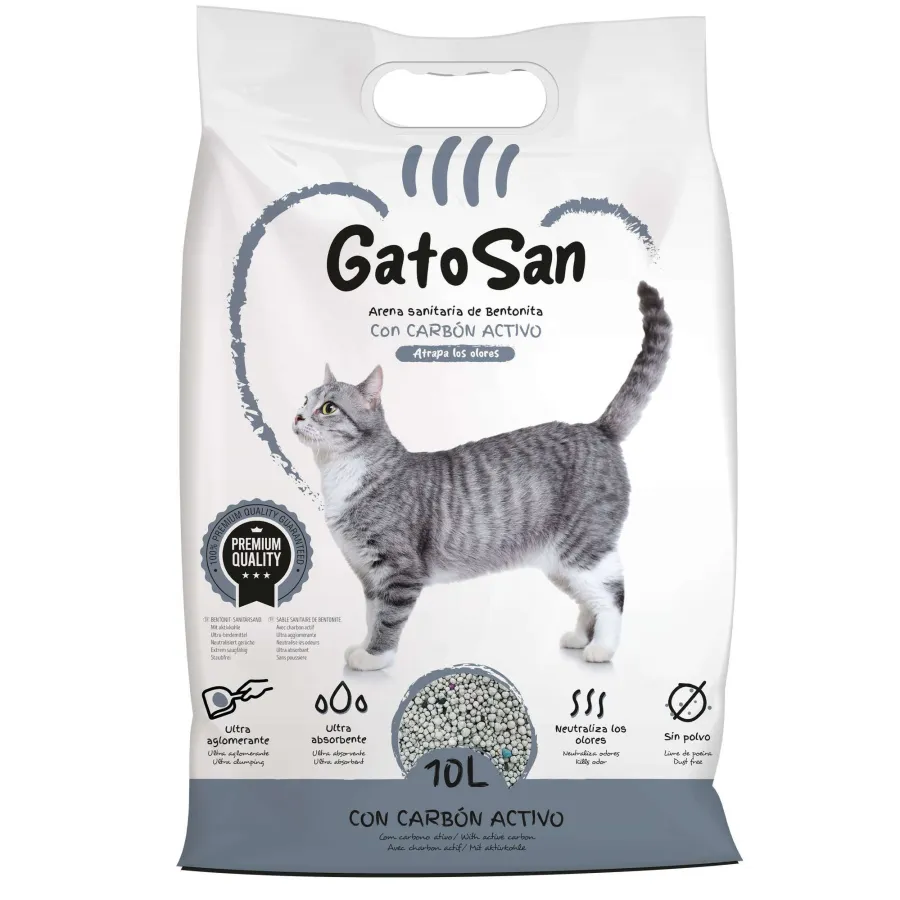 Arena sanitaria de bentonita con carbón activado GatoSan,10 l