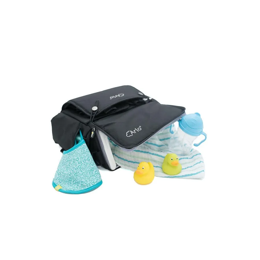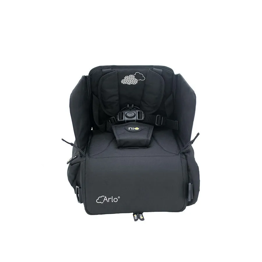 Arlo es un asiento elevador ultra ligero. Perfecto para cualquier situación ya que se puede usar como elevador y bolso/mochila de viaje, permitiendo guardar en su interior todo lo necesario para el bebe.
