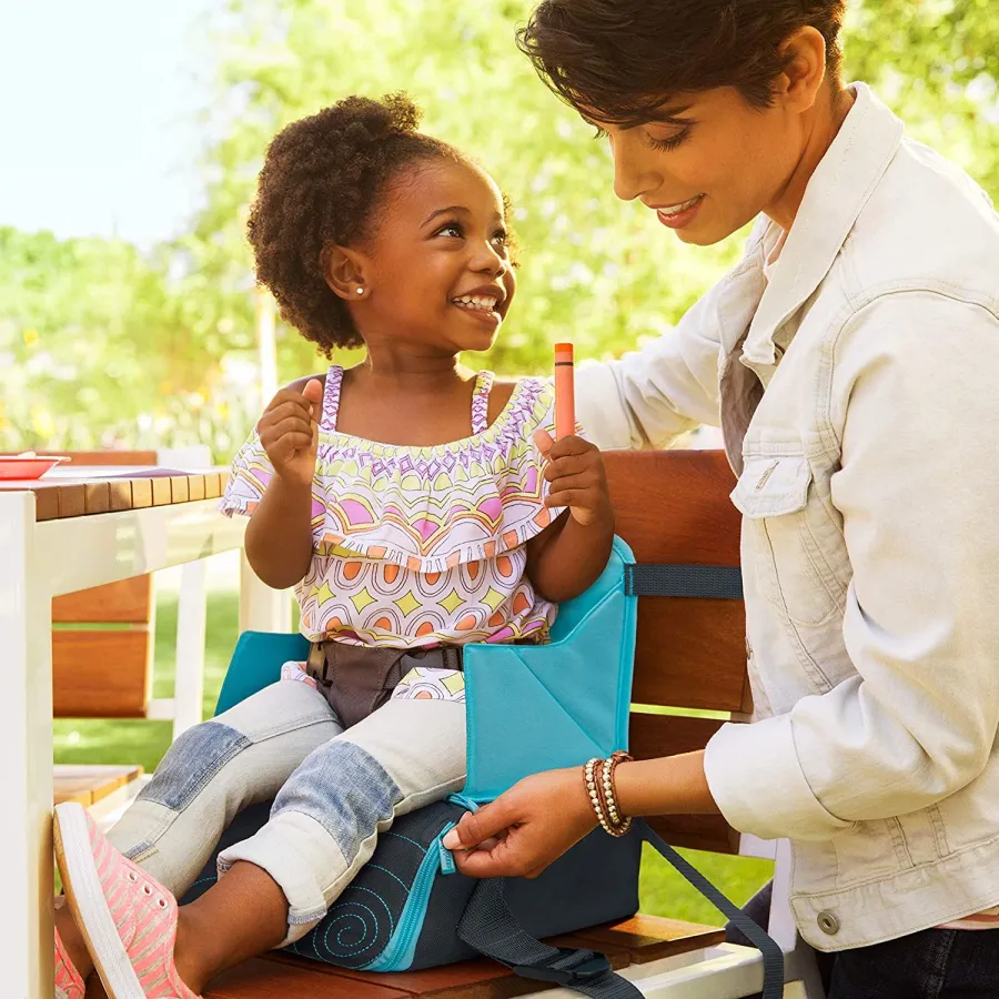 Con este hermoso alzador portátil de Munchkin no volverás a tener dificultades para sentar a tu peque a la mesa. Válido como asiento o trona es ligero y resistente para ofrecer la máxima seguridad. Cuenta con un amplio espacio para guardar las cositas del bebé como un bolso.