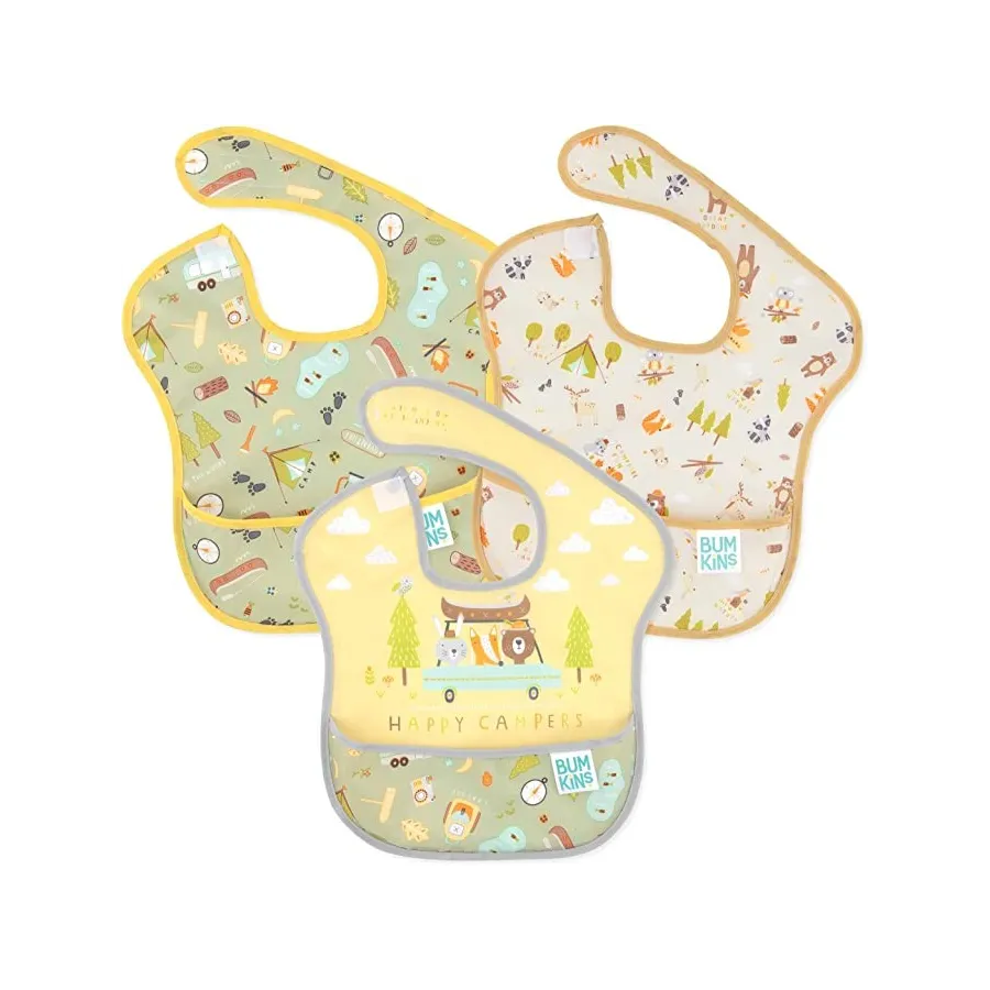 ¿Tu bebé empieza a comer solito? ¿Te preocupan las manchas difíciles? Los baberos Bumkins te ayudarán a mantener el orden y la limpieza a la hora de la comida. Ofrecen una cobertura amplia para las prendas y son cómodos, ligeros y resistentes a manchas difíciles. Pueden limpiarse con un paño y también en la lavadora. Fabricados con materiales libres de tóxicos, totalmente seguros para el bebé.