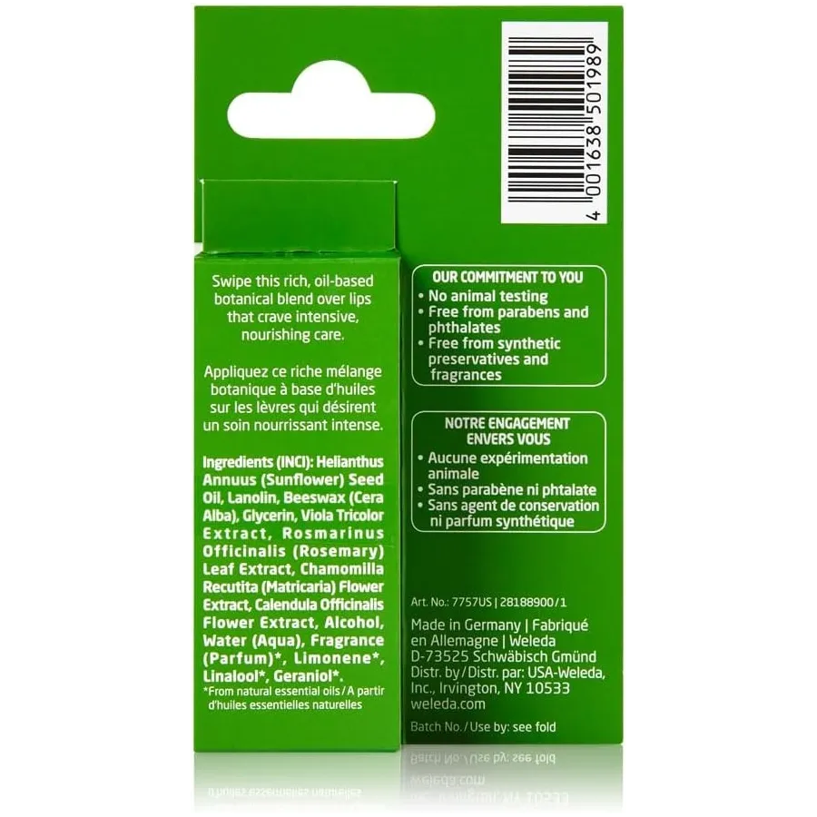 El bálsamo reparador labial de Weleda es perfecto para aplicar en cualquier momento y aportar alivio al instante a labios secos y agrietados. Su fórmula nutritiva skin food está elaborada con extractos de plantas naturales con un alto poder calmante y reparador como son la Viola, la Manzanilla, la Caléndula y la semilla de girasol. El bálsamo Labial de Weleda repara rápidamente en profundidad y crea una barrera protectora ante los agentes externos. Úsalo a diario para disfrutar de unos labios cuidados, suaves y jugosos. Aporta un ligero brillo para un toque de belleza extra. Es ideal como base de maquillaje. Formato 8ml.