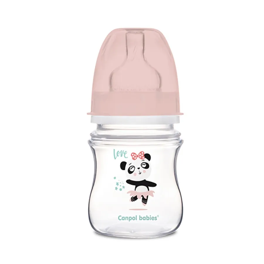 Biberón Anticólicos "EasyStart" Animales Exóticos de Canpol, es un biberón anticólicos ligero, duradero y transparente. Está elaborado en polipropileno, lo que lo hace más seguro para la slaud de tu peque, pues está libre BPA. Su fantástica tetina de silicona que imita el pezón de la madre, lo que te permitirá combinar la lactancia materna con la alimentación con biberón si lo requieres.