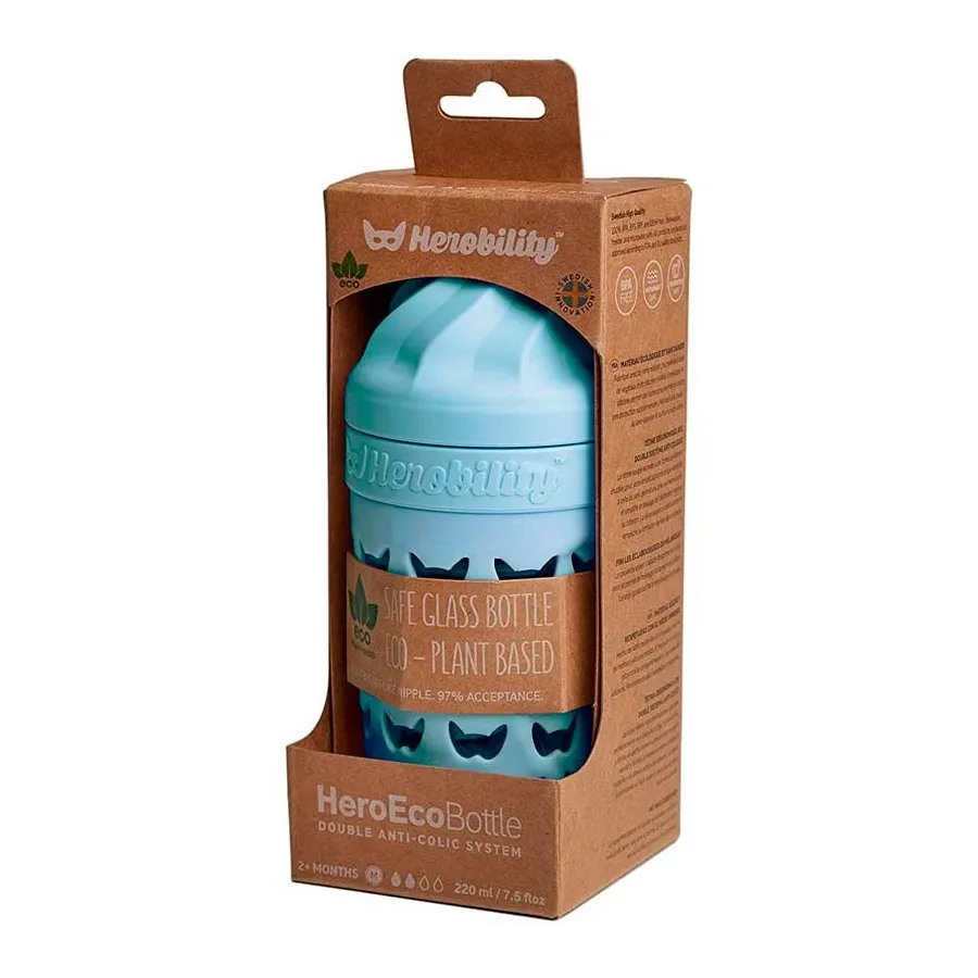 El biberón de cristal Eco 220ml de Herobility fue elegido por la Asociación Sueca de juguetes y artículos de bebés como el producto del año en la categoría medio ambiente, ya que es 100% libre de BPA, BPS, BPF y DEHP.
