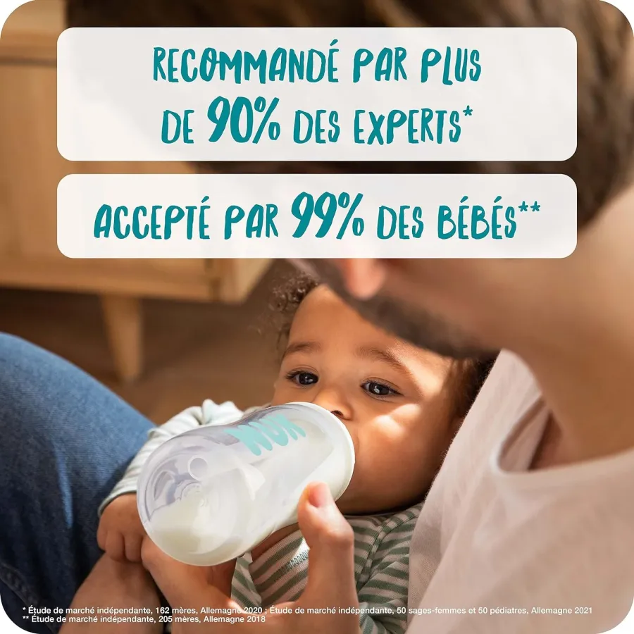 Este innovador biberón cuenta con múltiples ventajas que te ayudarán a alimentar al bebé correctamente. La tetina de silicona talla M es perfecta para la alimentación con leche de fórmula de bebés de 0 a 6 meses. Su forma anatómica imita al pecho materno respetando el desarrollo natural de la cavidad oral y el paladar. Su sistema anticólico profesional reduce la ingesta de aire en hasta un 96% más que un biberón convencional. Se trata de un canal que dirige el aire al fondo del biberón impidiendo que se mezcle con la leche.