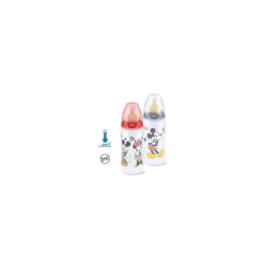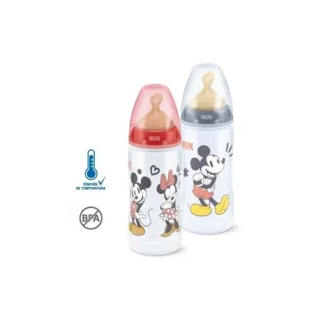 Biberón First Choice Mickey control temperatura, Látex (+6) 300ml.Nuk