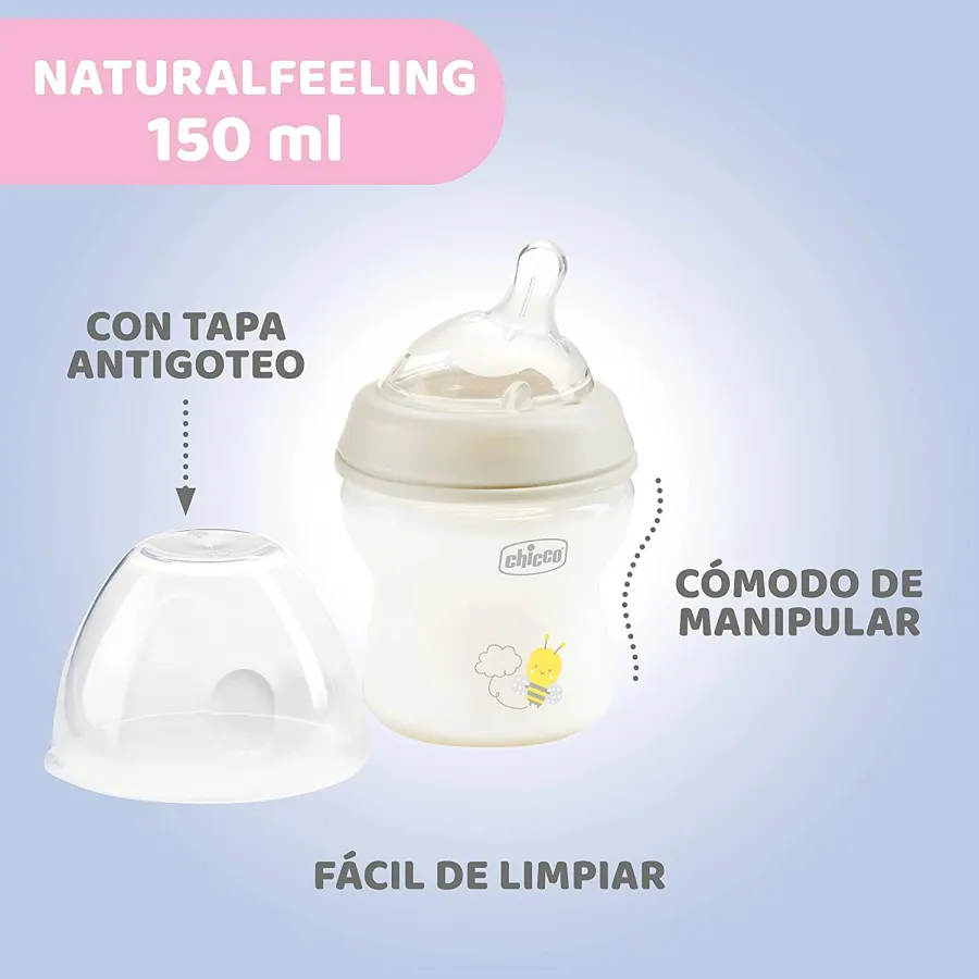 - Sensación natural: la línea de biberones Natural Feeling simula la lactancia gracias a su tetina de silicona suave y aterciopelada que asegura una sensación natural durante la alimentación en cada toma. De material de silicona blanda e higiénica fácil de limpiar y esterilizar
