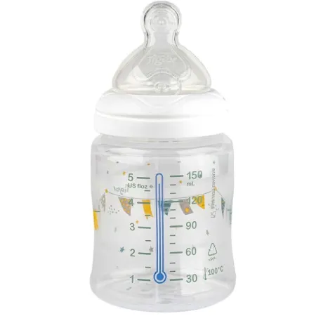 La válvula anticólico impide la ingesta de aire minimizando los cólicos, los gases y las molestias facilitando la digestión. Gracias al capuchón es muy fácil de transportar o agitar sin derrames. Apto desde el nacimiento. Capacidad 150ml. Libre de BPA.
