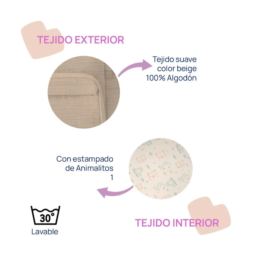 Fabricada en un tejido suave, ligero y lavable, ideal para el uso diario. Su composición permite limpiarla fácilmente sin perder su forma ni color. ¡Práctica y bonita a partes iguales!