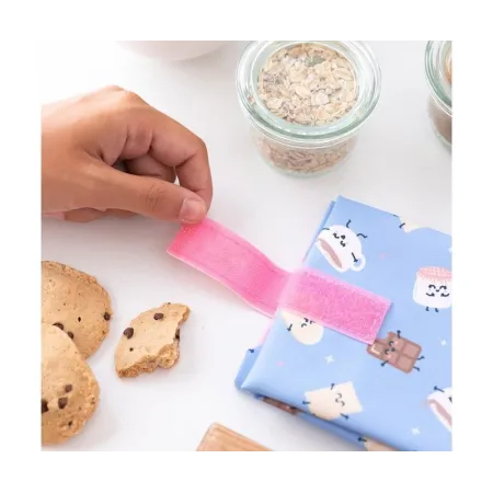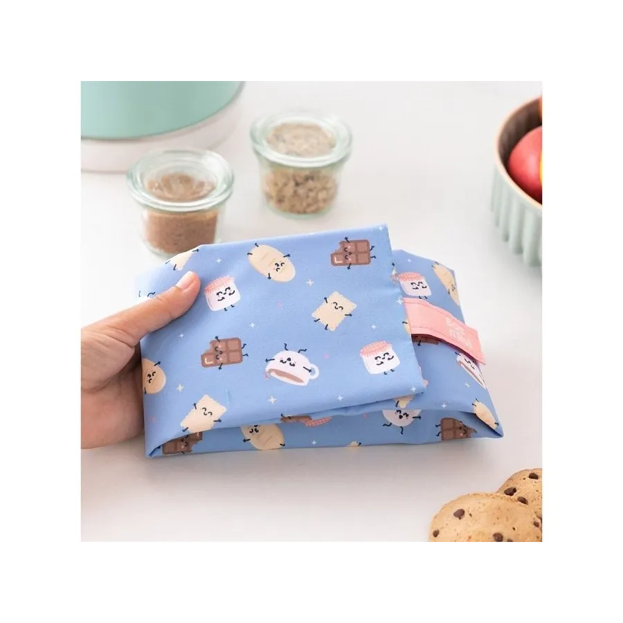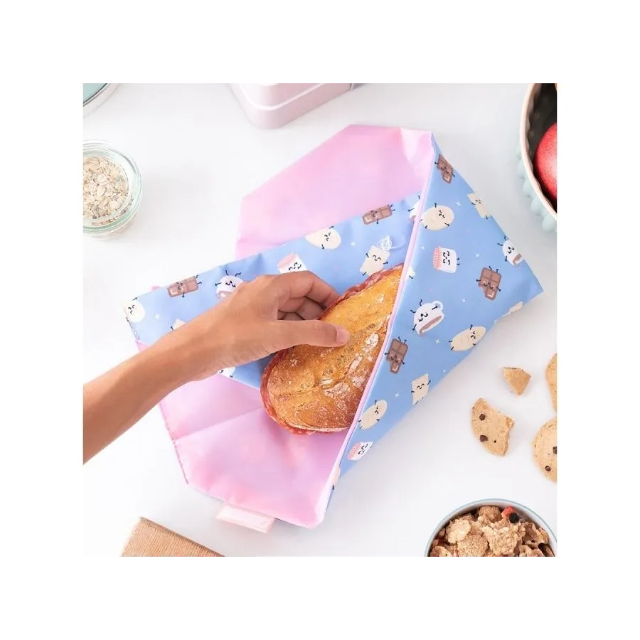 ¡Diga adiós a los envoltorios desechables! El porta bocatas es reutilizable y muy fácil de limpiar. Su cierre plegable se ajusta a cualquier alimento.