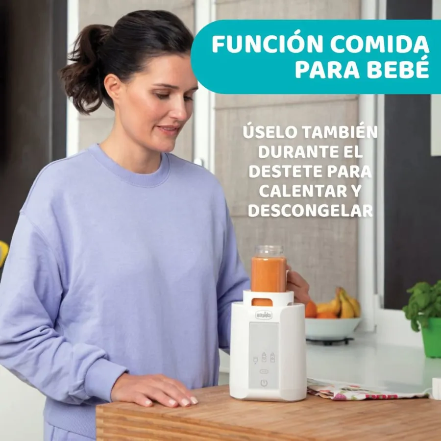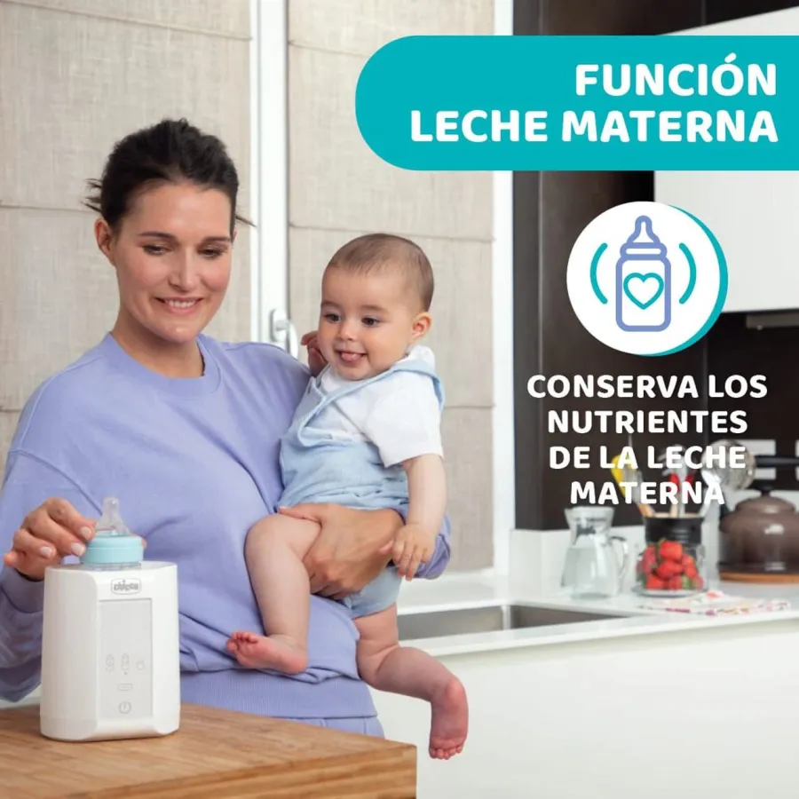 El calienta biberones casa y coche de Chicco cuenta con 5 programas: calienta rápido, gradual, descongela, comida o leche y mantiene la temperatura durante 1 hora. Con el programa especial leche materna, calienta gradualmente para conservar todos los nutrientes esenciales.