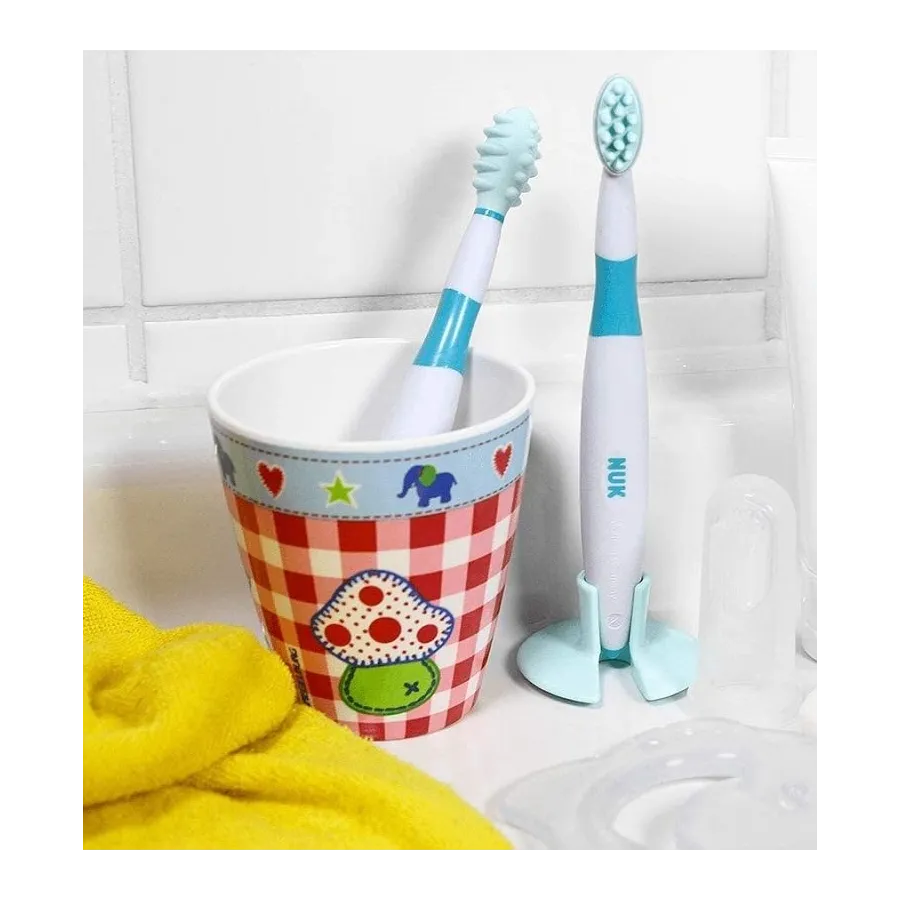 Este maravilloso Set Cepillo Dental Entrenade Nuk está indicado para bebés mayores de 6 meses que sienten molestias asociadas a la dentición. Es ideal para empezar la rutina de limpieza de los pequeños.