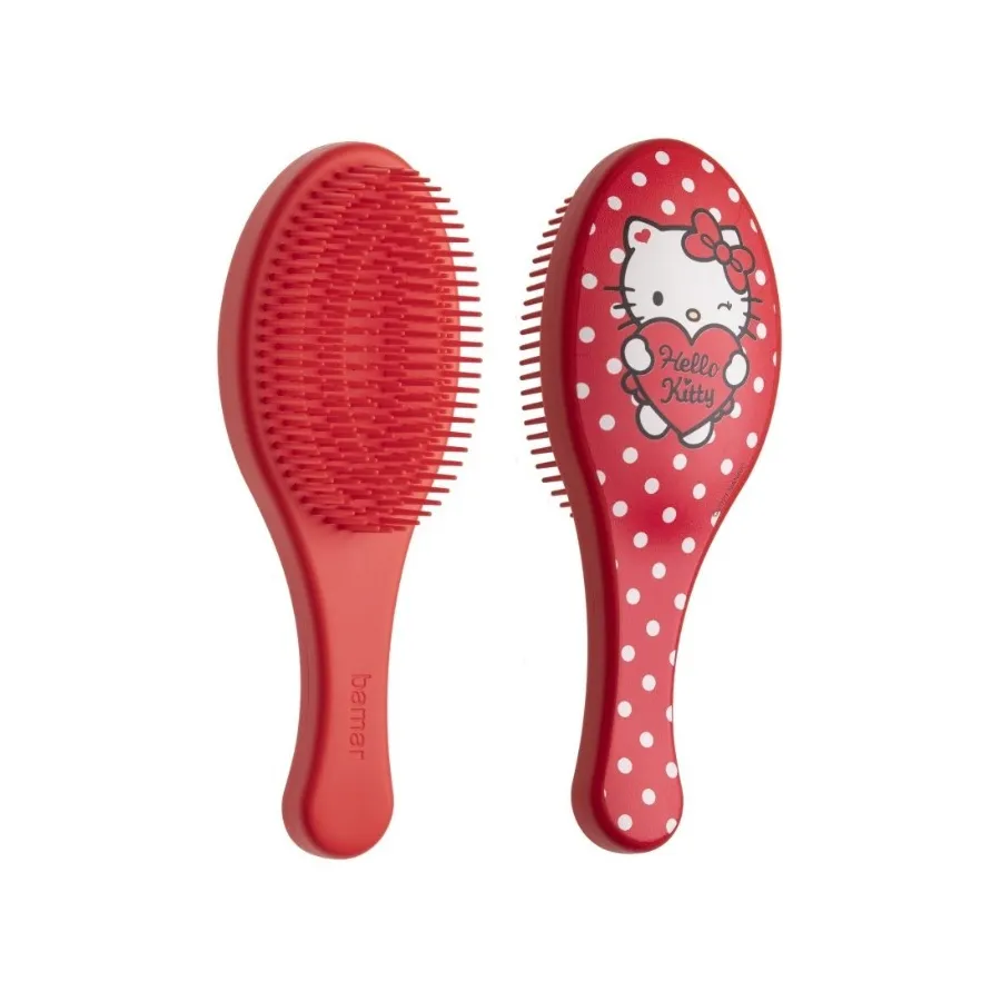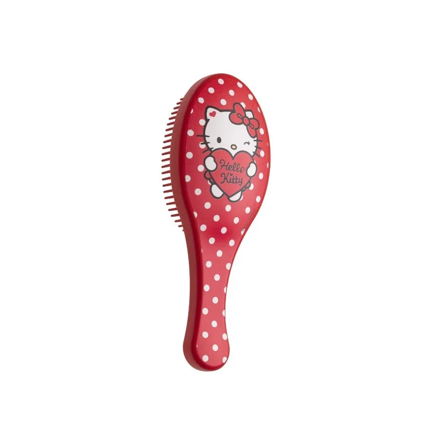 El cepillo desenredante Hello Kitty ha sido diseñado para eliminar los nudos del cabello fácilmente y sin dolor. Gracias a las puntas redondeadas cepilla el cabello con suavidad eliminado los nudos eficazmente. Es perfecto para cepillar el pelo seco o mojado minimizando la rotura y el daño capilar. Su encantador diseño con la tierna Kitty gusta a niños y mayores. ¡Úsalo a diario para tener una vida más fácil y decir adiós a los nudos y tirones de los más pequeños!