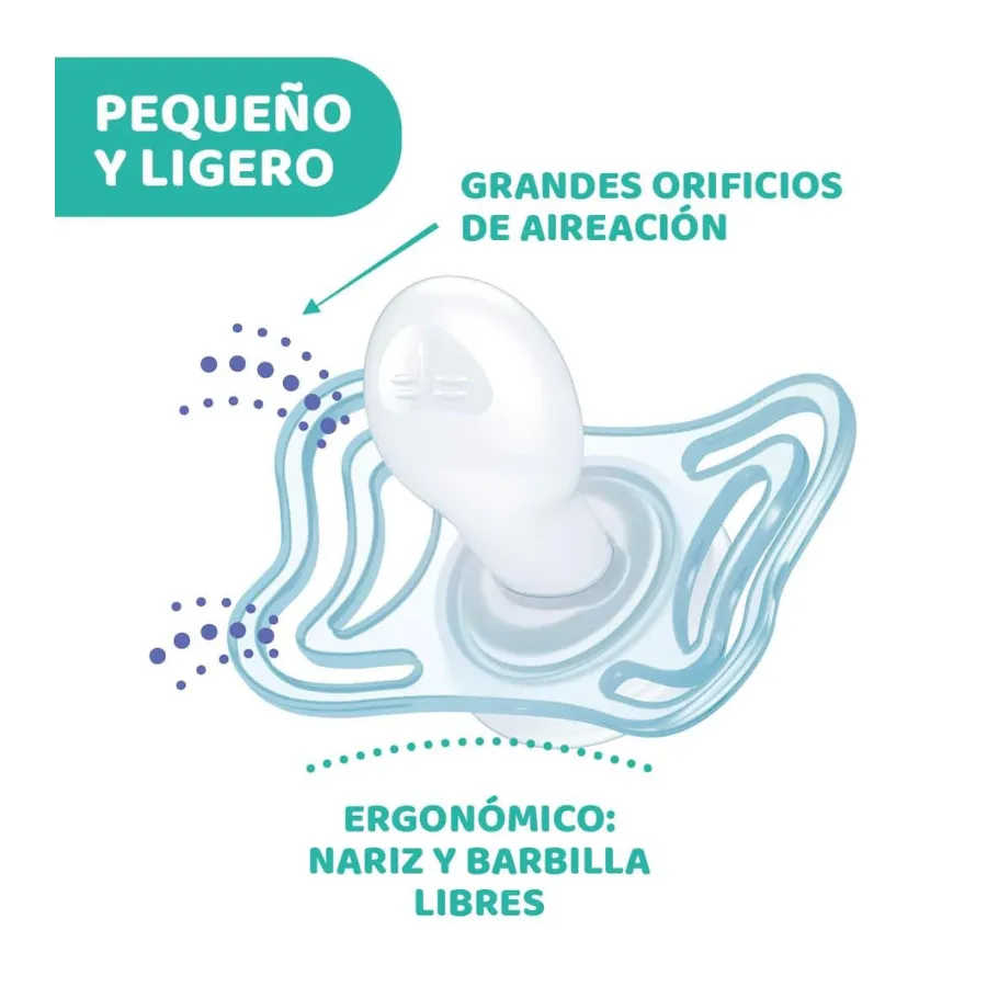 Gracias a su estructura minimalista, este chupete ligero Chicco Light reduce la fatiga bucal del bebé, facilitando el agarre y la succión incluso durante el sueño. Su diseño ventilado permite que la piel respire, evitando irritaciones en la zona peribucal.