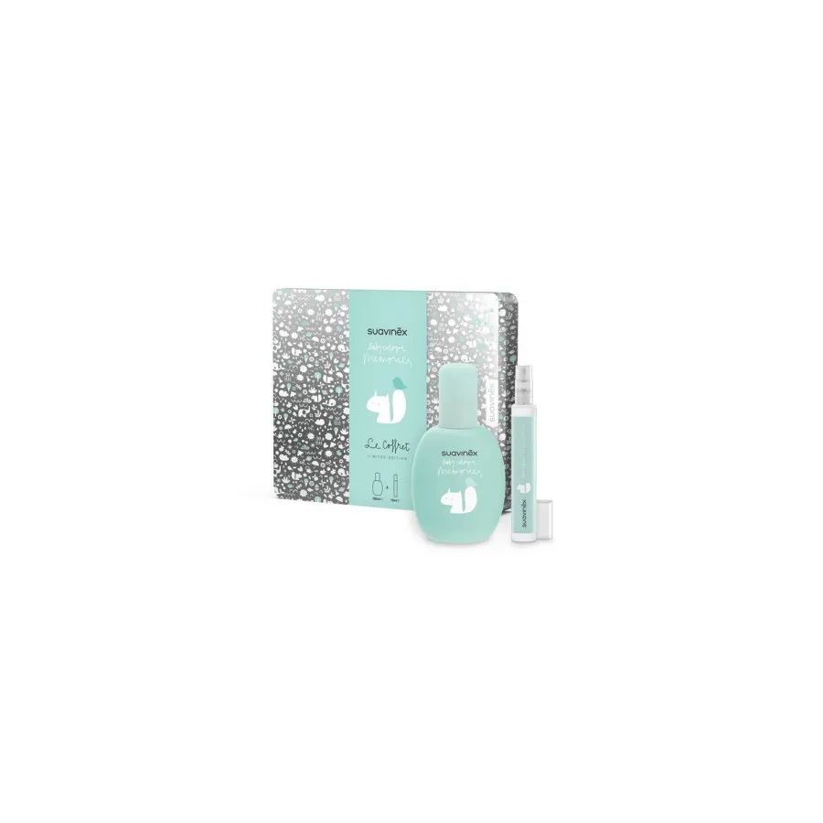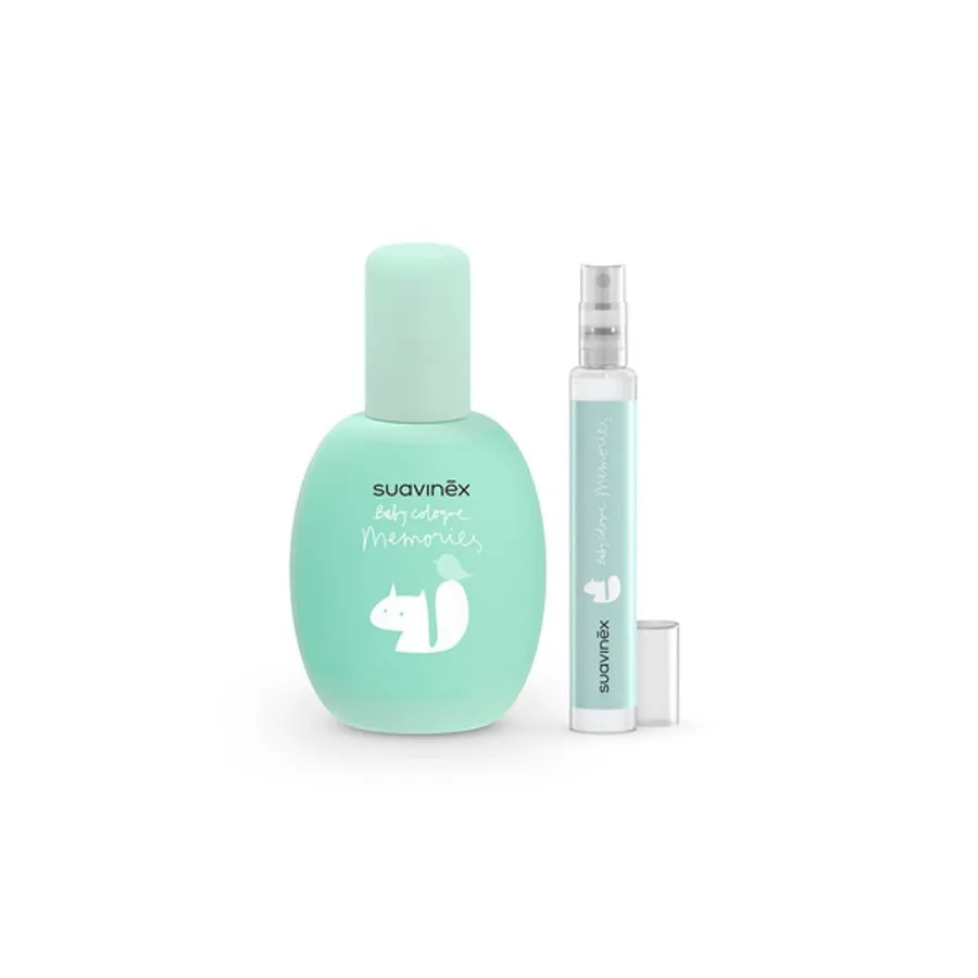 La colonia infantil Memories 100ml de Suavinex está elaborada con extracto de jazmín, azahar, madera de cedro blanco y cashmere, almizcle y ámbar. Tiene un aroma ligero pero muy duradero y favorece una atmósfera de bienestar y confort. Aplícalo en tu mano para pasarlo suavemente por el bebé estimulando los sentidos. Fabricado para bebés y pensado para toda la familia es muy bajo en alcohol evitando la producción de manchas. Presentada en una preciosa caja metálica con diseño elegante y edición limitada incluye 1 frasco de 100ml y un vaporizador de 15ml para llevar a todas partes fácilmente.