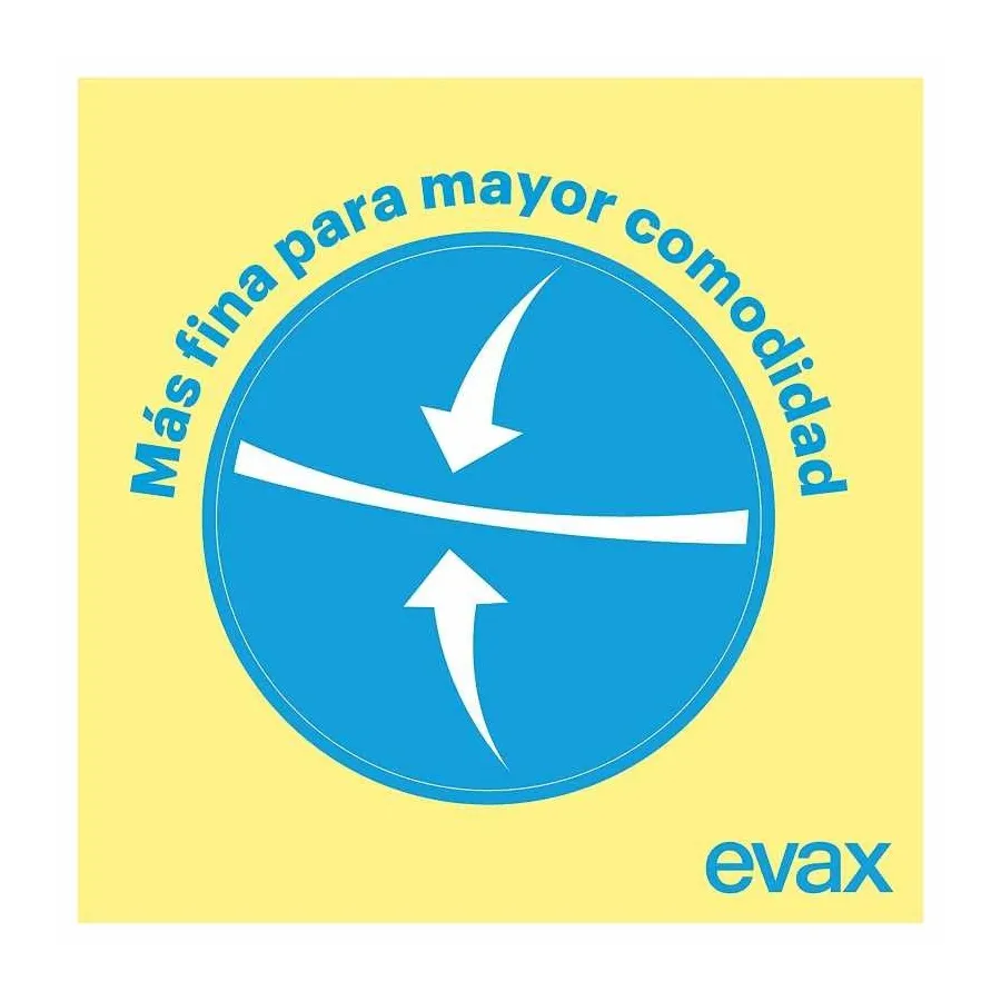 Las compresas EVAX Fina y Segura son finas para ofrecerte una mayor comodidad, incorporan el Sistema No Olor y su núcleo superabsorbente te permitirá sentirte segura y protegida durante todo el día.