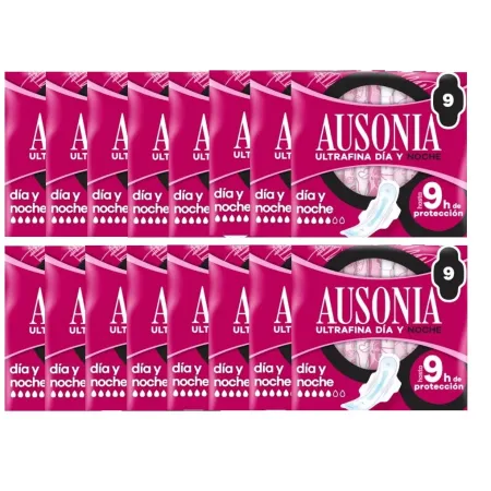 Compresas Ausonia ultrafina día y noche. Pack Ahorro 8 x 9