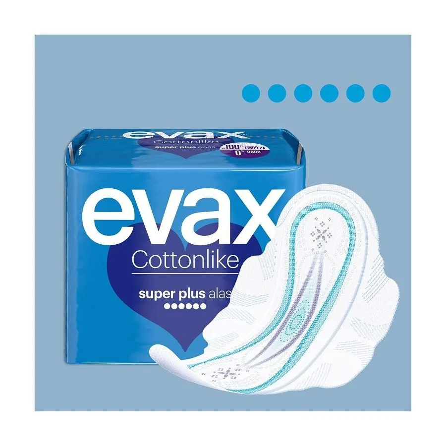 Últimas unidades en stock Cuidado Menstrual Compresas Evax Cottonlike Alas Noche (9 Uds.) 0,29€ / unidad 2,58 € Las compresas EVAX Cottonlike Noche serán tu opción perfecta para asegurar una protección óptima durante la noche.3939 Añadir al carrito