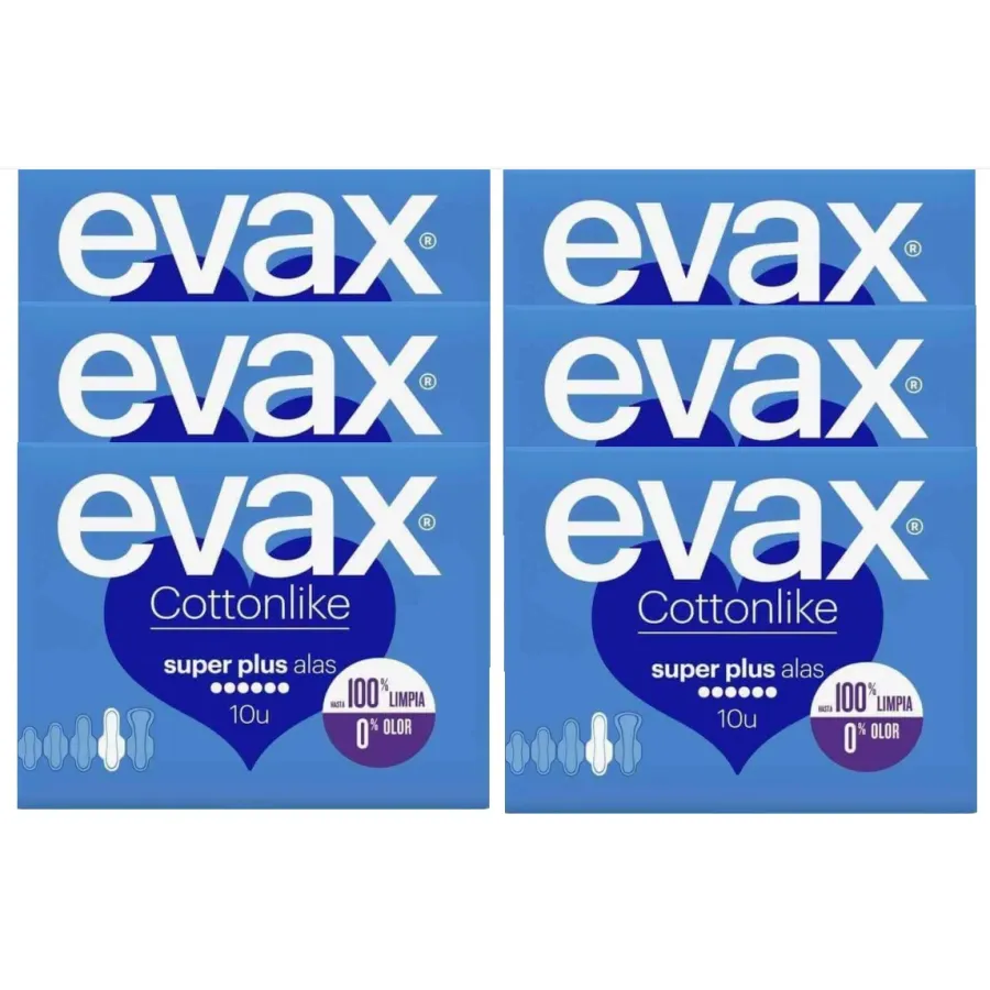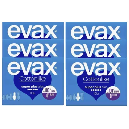 Compresas Evax Cottonlike Alas Súper Plus. Pack Ahorro 6 x10