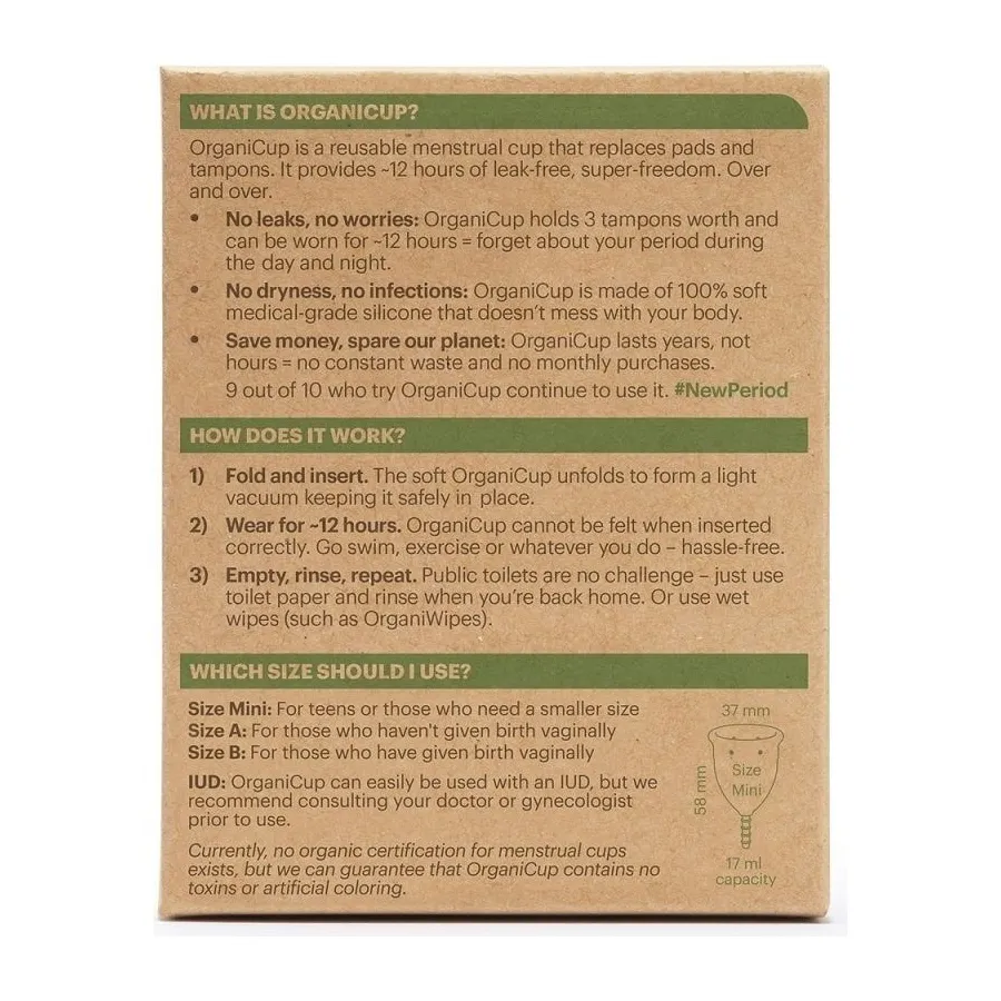 La Copa Menstrual Organii es perfecta para mantenerte fresca y segura. Sólo necesitas una copa. No necesita recambios.