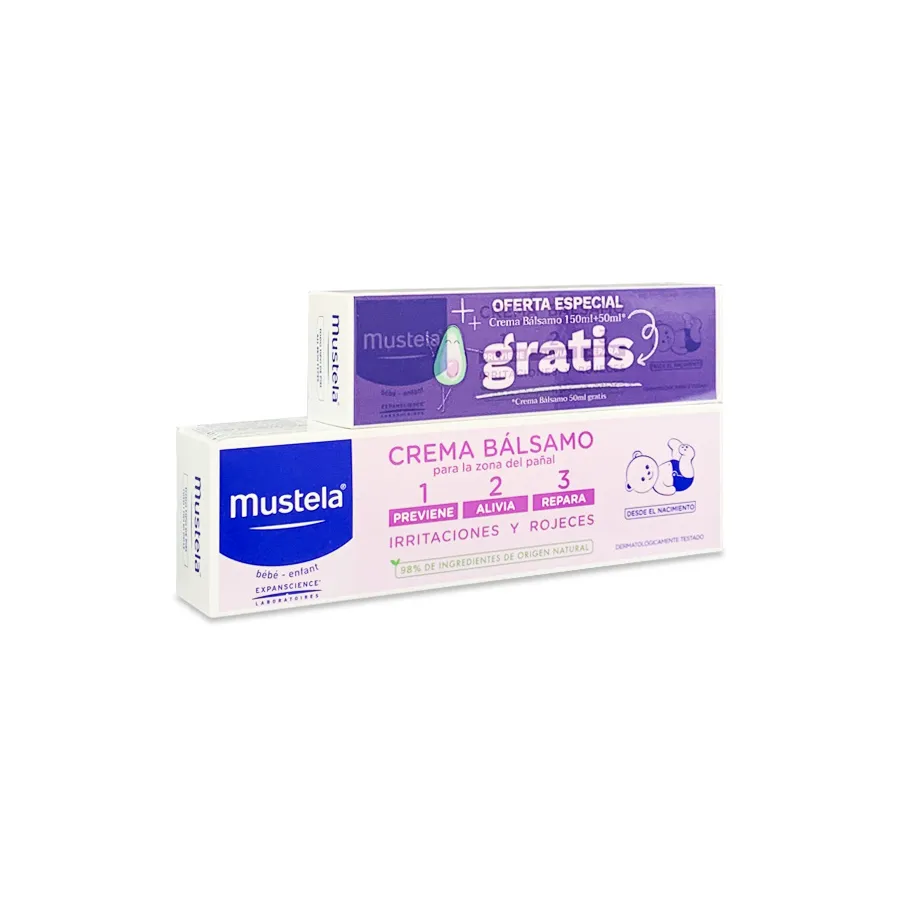 Crema Bálsamo 1 2 3 de Mustela proporciona un cuidado completo para la zona del pañal debido a que previene las irritaciones y rojeces, alivia desde la 1ª aplicación y repara la piel.