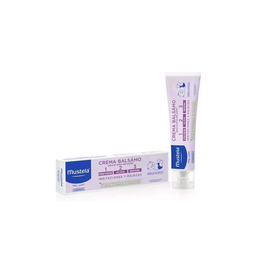 Crema Bálsamo 1 2 3 de Mustela (150ml) proporciona un cuidado completo para la zona del pañal debido a que previene las irritaciones y rojeces, alivia desde la 1ª aplicación y repara la piel.