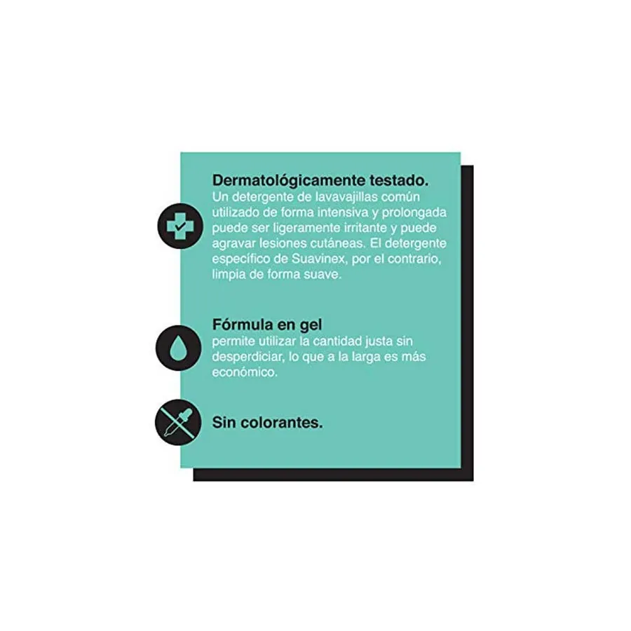 Detergente específico para biberones y tetinas de Suavinex. Formulado con ingredientes naturales y enzimas que eliminan con facilidad las proteínas de la leche. Práctico bote, este jabón será tu aliado indiscutible para asegurar que los biberones y tetinas de tu peque estén siempre limpias, no contiene agentes químicos nocivos para tu bebé.