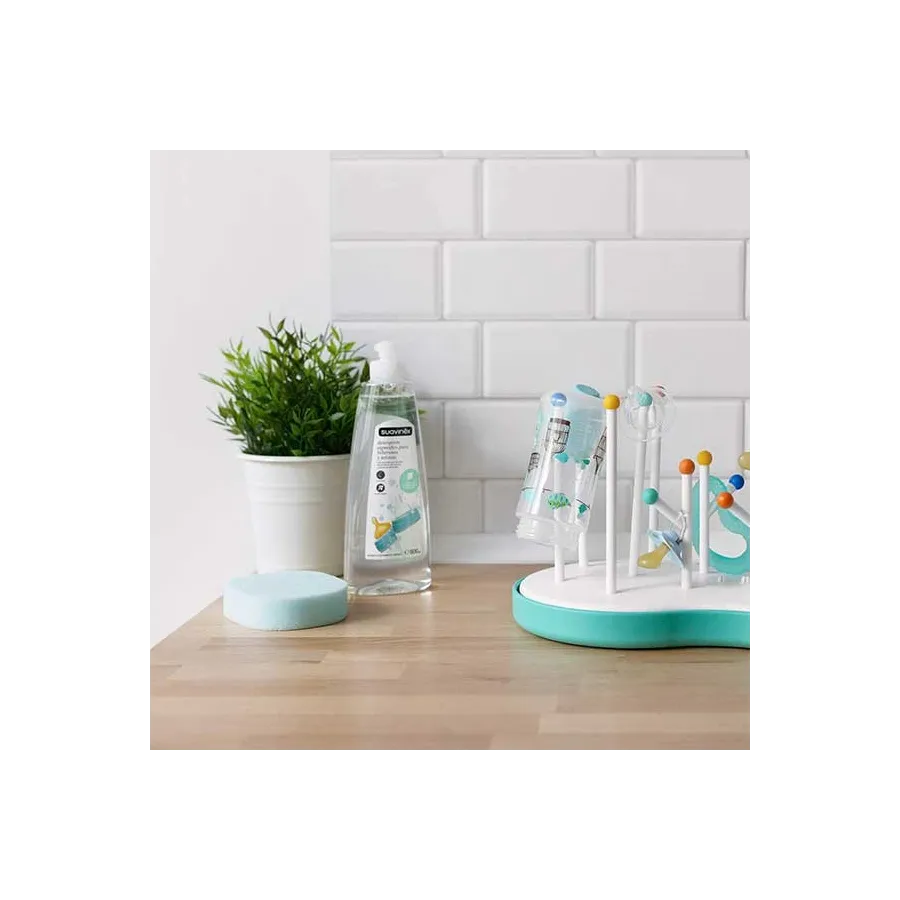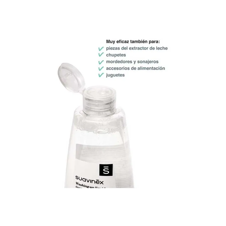 El detergente para biberones y tetinas de suavinex es eficaz para eliminar restos de alimentos de forma segura para tu bebé. No contiene perfume y sí está fabricado con ingredientes naturales. El contenido de la botella es de 500 ml.