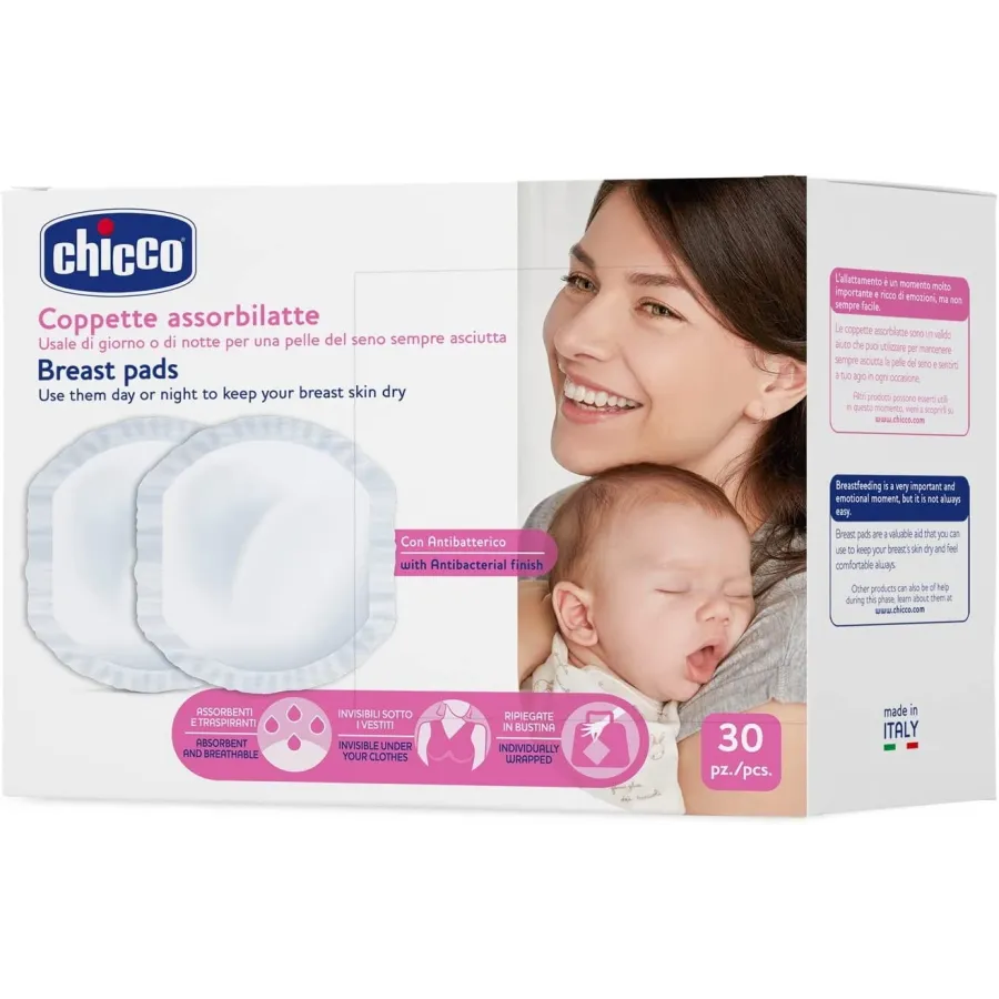 Los Discos absorbentes antibactéricos de Chicco mantienen las condiciones higiénicas ideales para facilitar la cicatrización cuándo aparecen grietas o irritaciones en el pecho.