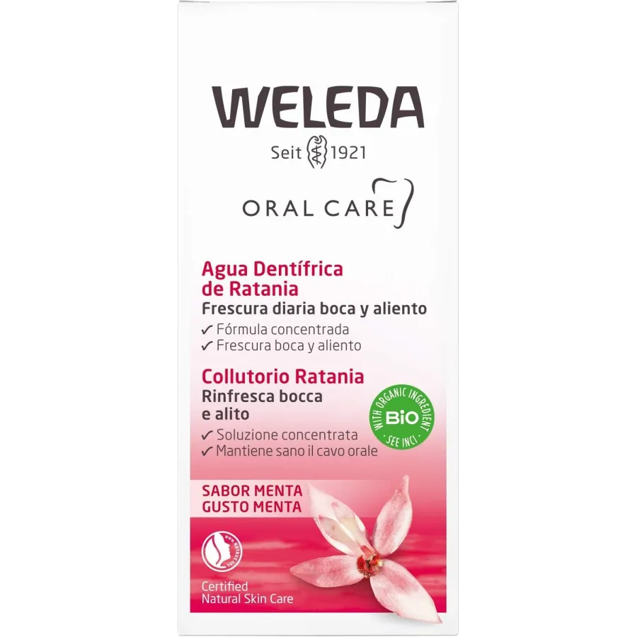 Enjuague bucal, agua dentífrica de Ratania (50ml). Weleda