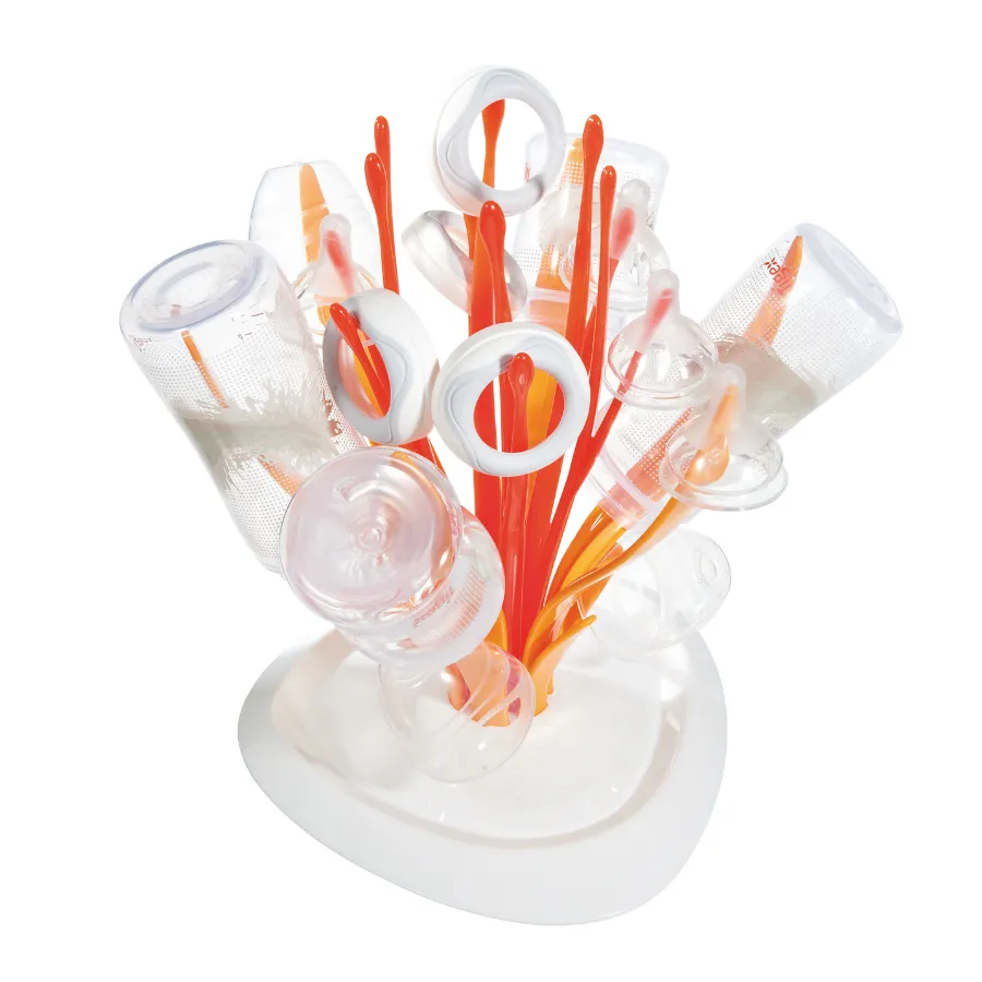Mantener tus biberones, tetinas y accesorios limpios y libres de gérmenes nunca ha sido tan fácil. El Escurre Biberones Tigex Flower es una solución eficiente que ahorra tiempo, optimizando la limpieza de todos los utensilios del bebé.