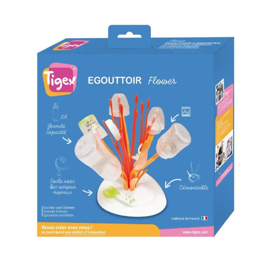 Tigex es una de las marcas líderes en productos de puericultura. Con más de 50 años de experiencia en el sector, Tigex ofrece productos innovadores y de calidad. El Escurre Biberones Flower de Tigex está fabricado con materiales libres de BPA, lo que garantiza la seguridad de tu bebé.