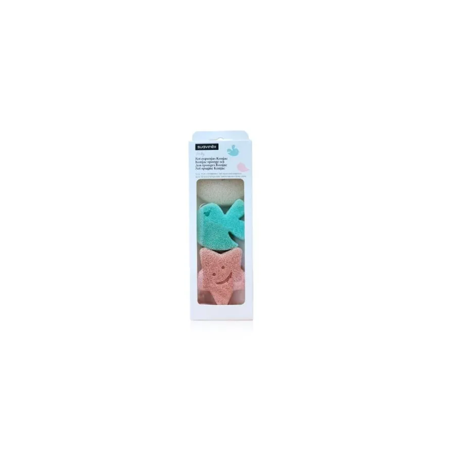 Las esponjas Konjac de Suavinex ofrecen una limpieza extra suave y eficaz a todo tipo de pieles. Son unas esponjas excepcionales para la higiene del bebé que pueden usarse con o sin jabón. Han sido fabricadas con la fibra de la raíz de Konjac que aporta grandes beneficios a la piel del rostro y el cuerpo. Cuentan con un diseño divertido con motivos marinos y un cordelito para colgar y dejar secar al aire entre usos evitando la proliferación de bacterias. Cuenta con una textura extra suave ofreciendo una experiencia muy agradable al tacto. Presentación: paquete de 3 unidades de formas y colores diferentes con motivos marinos.