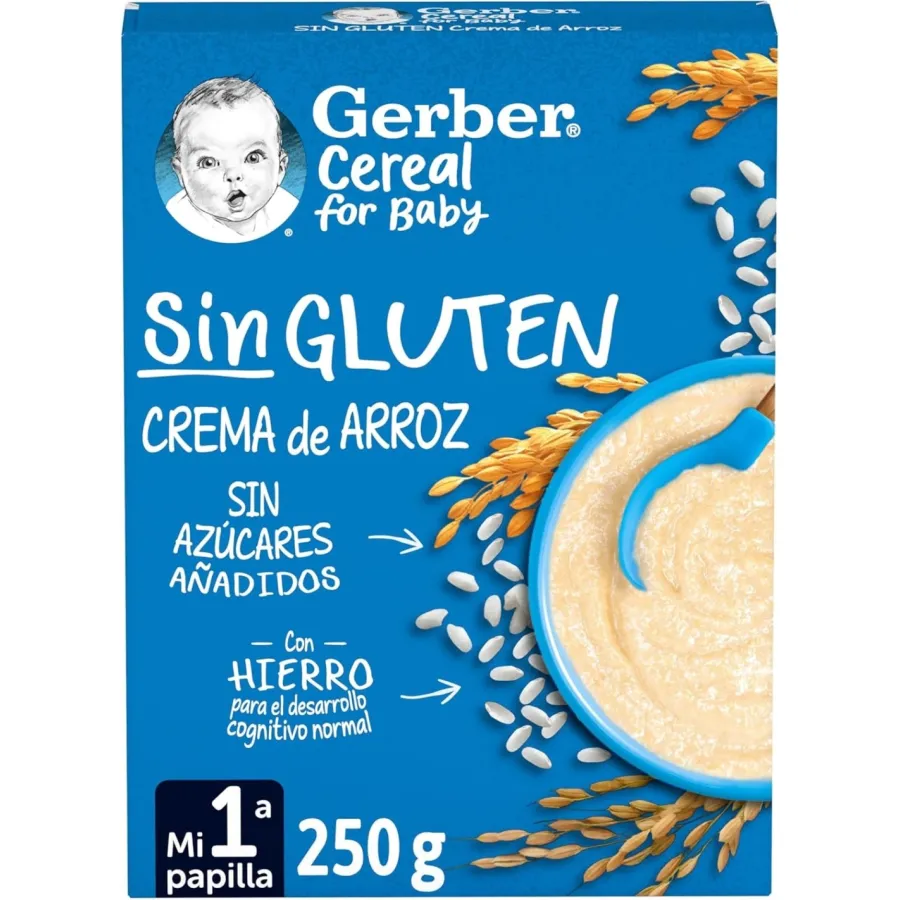 Prueba el delicioso Gerber Papilla Crema de Arroz como alimento complementario para tu peque.