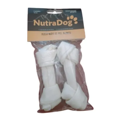 Huesos blanco de piel con nudo Nutradog. 2 und de 10cm