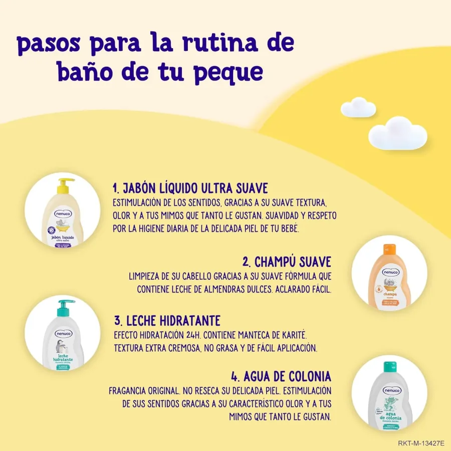Jabón Líquido Ultra Suave Nenuco. El jabón líquido ultra suave con Vitamina E y Aloe de Nenuco es idóneo para la higiene diaria de los más pequeños que cuida y limpia delicadamente la piel del bebé.