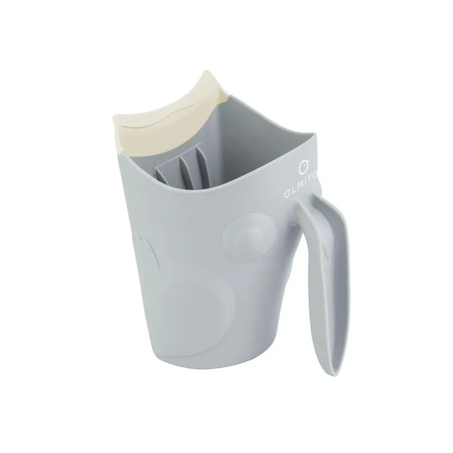 Haz que la hora del baño sea un momento divertido, seguro y sin lágrimas con la jarra de aclarado Olmitos, un accesorio ergonómico diseñado especialmente para bebés desde los 0 meses.