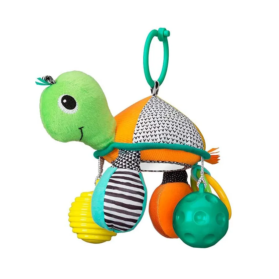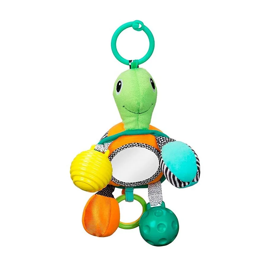 Además de ser fabricada con tejidos súper suaves, viene con un divertido espejo y cuando se agita produce un sonido de traqueteo. ¡la tortuga espejo Infantino se convertirá en su juguete favorito!