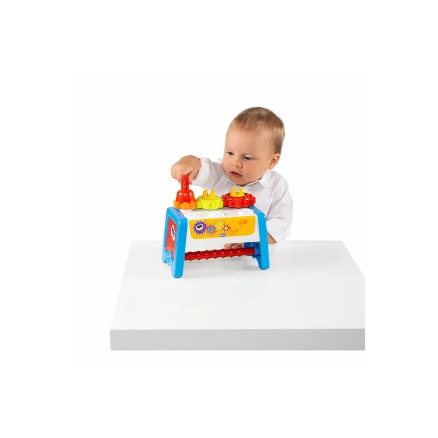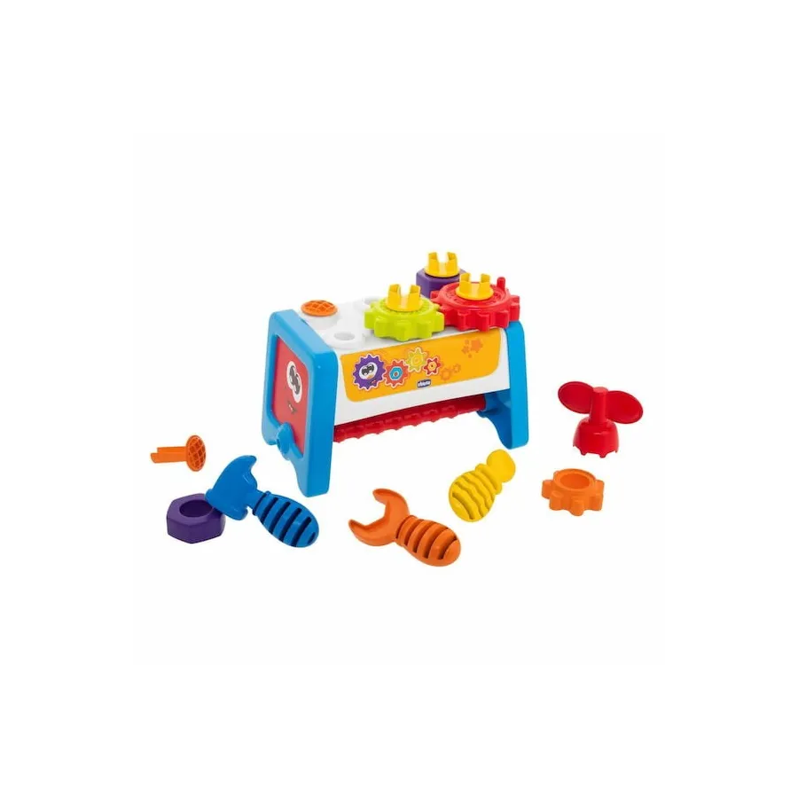 ¡El clásico juego de herramientas para los niños que se convierte en una estación de trabajo mecánica! El Juguete Escuela de Herramientas de Chicco ayuda con la asociación lógica de causa - efecto mientras desarrollan también las habilidades manuales.