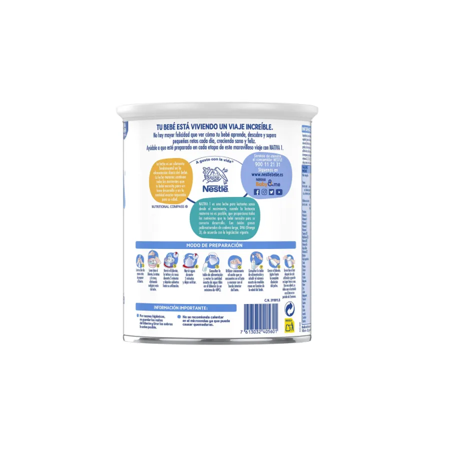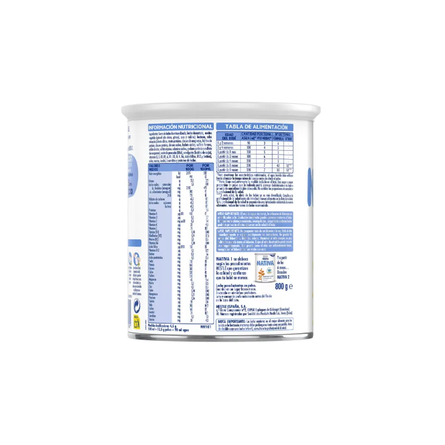 La leche NATIVA 1, Es una leche en polvo para lactantes que proporciona un crecimiento sano.