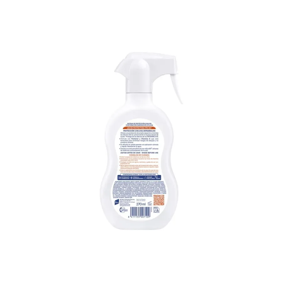 La leche protectora infantil para pieles sensibles de Denenes tiene un alto nivel de protección de amplio espectro y ofrece un extra de protección a las pieles más delicadas y atópicas en cada aplicación. Gracias al formato pistola la aplicación es mucho más fácil y rápida. Se recomienda cubrir la piel 20 minutos antes de la exposición al sol para garantizar los resultados. Reaplicar tras bañarse, secarse o transpirar. Su fórmula enriquecida con extractos de algodón, Pantenol y Vitamina E es hipoalergénica y no contiene alcohol. Cuenta con Viteox80 que refuerza los defensas y antioxidantes de la piel.
