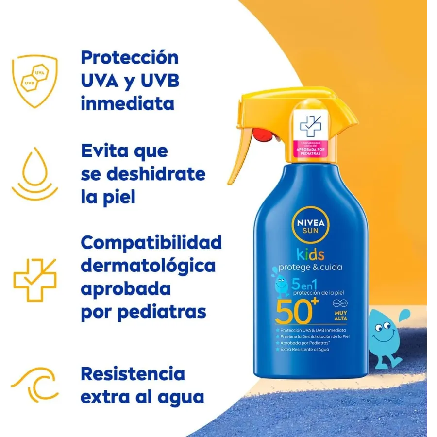 Leche solar infantil SPF 50+ SUN KIDS pistola (270ml). Nivea