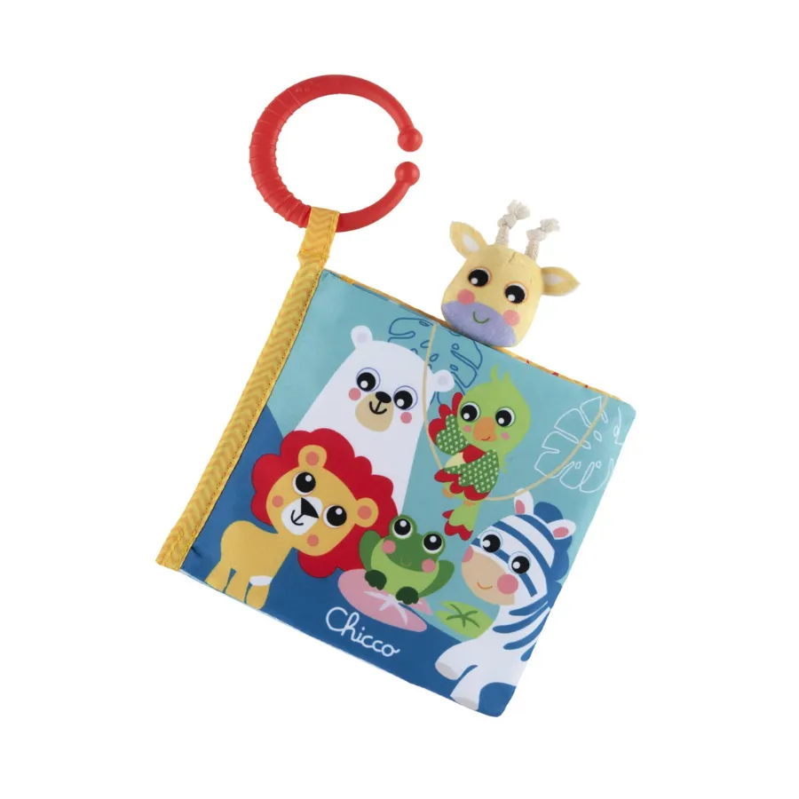 El Libro de los animales. Chicco no es solo un juguete, sino una herramienta de aprendizaje y diversión diseñada especialmente para bebés a partir de 6 meses. Este libro de tela interactivo presenta diferentes texturas, colores vivos y una divertida marioneta de jirafa, ideal para captar la atención del niño desde el primer momento.