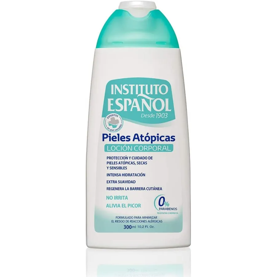 La piel atópica requiere de cuidado diario para prevenir la aparición de nuevos brotes. Instituto español ha formulado esta loción corporal específica para el cuidado integral de la piel atópica. Cuenta con una triple acción que hidrata en profundidad, regenera el manto lipídico e impide la sequedad calmando eficazmente la irritación y el picor de la piel atópica. Enriquecida con potentes agentes antidescamativos, hidratantes y emolientes para recuperar el aspecto natural de la piel. Textura fluida para una fácil aplicación y absorción. Úsala en tu rutina diaria y disfruta de una piel sana.