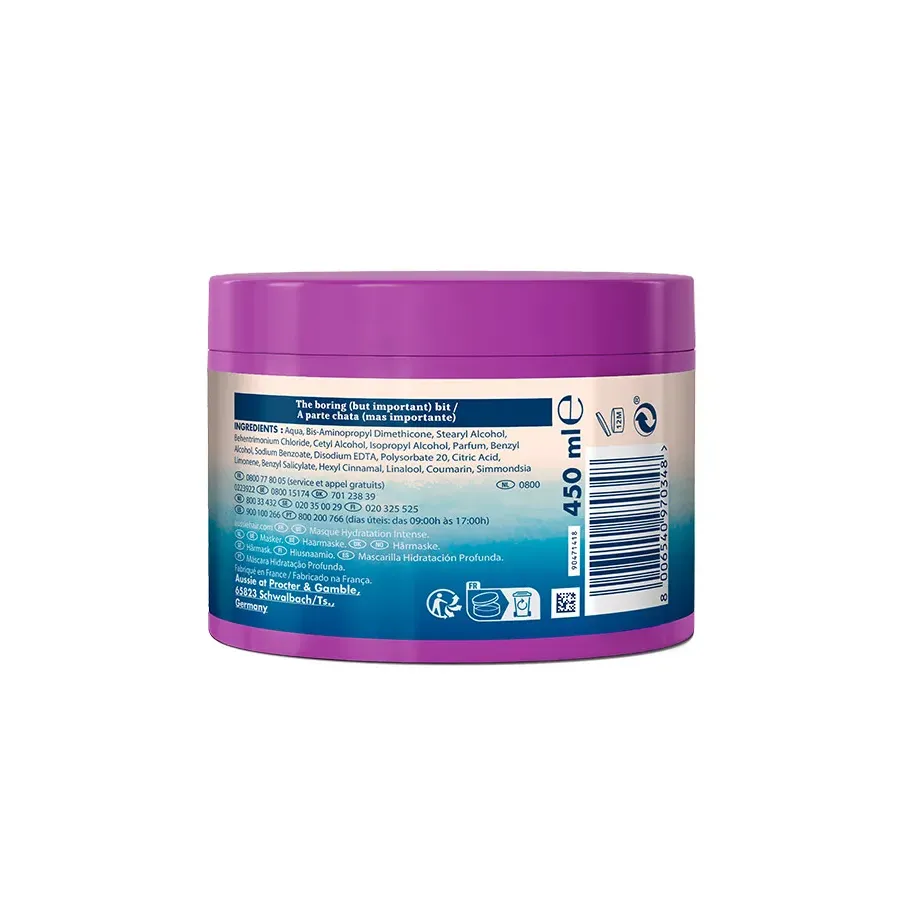 ¡Dale a tu cabello seco y dañado la hidratación que merece! Con aceites de jojoba, aguacate y macadamia, esta mascarilla capilar vegana de Aussie repara profundamente, dejando tu pelo suave, nutrido y felizmente hidratado por hasta 3 días. ¡Cuidado capilar libre de crueldad animal!