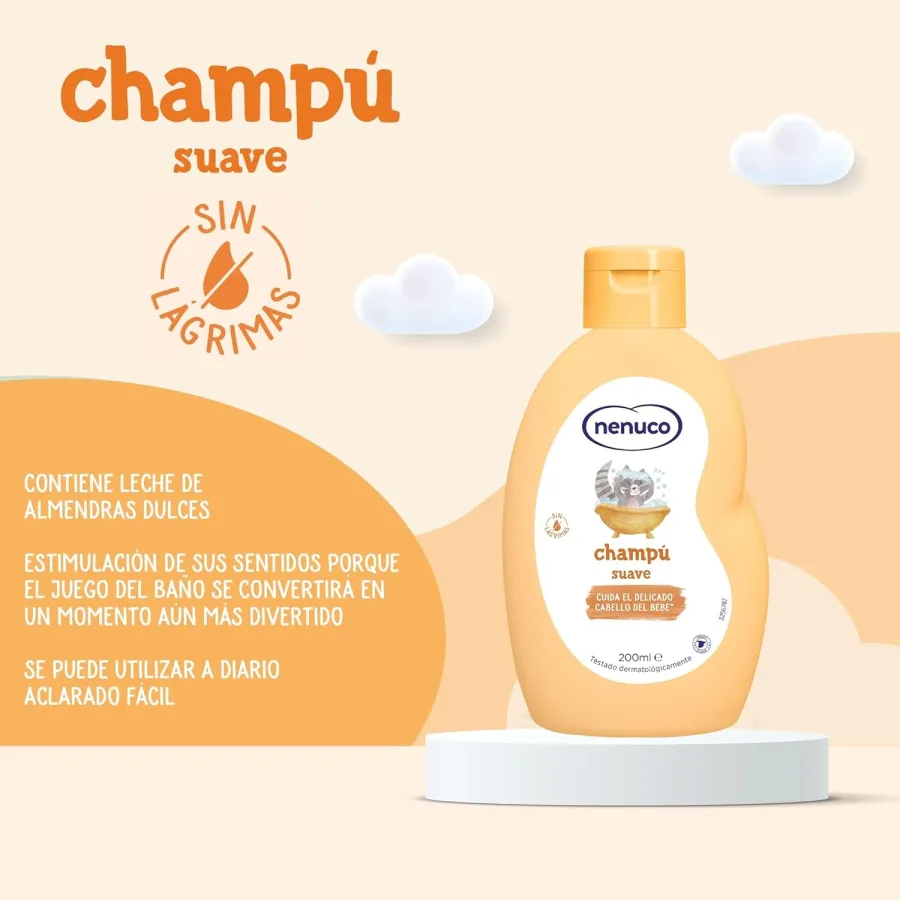 - Champú extra suave – Sin lágrimas y con pH neutro, perfecto para el cabello del bebé.