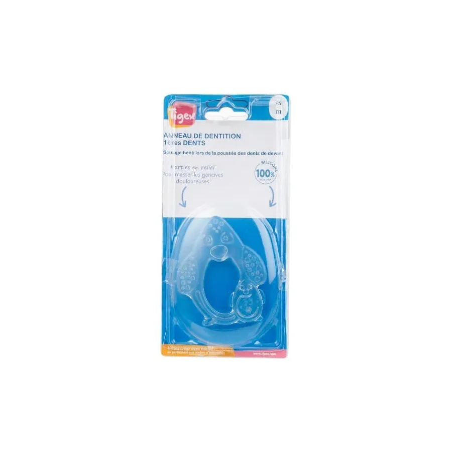 Las diferentes texturas ayudan con la erupción de los primeros dientes. Al mordisquearlo el bebé encontrará confort y alivio en las encías. Este precioso mordedor refrigerado aumenta su poder analgésico. La forma de anillo permite una manipulación fácil con manos pequeñas. Diseñado para adaptarse al paladar del